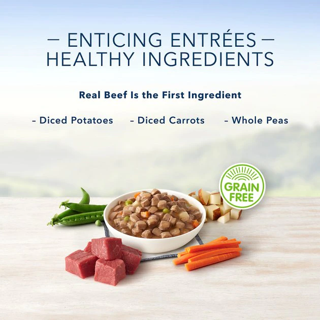 Feed your little furry friend a meal that’s both nutritious and delicious! Blue Buffalo Divine Delights Filet Mignon Flavor Hearty Gravy Dog Food is crafted to meet the nutritional requirements of small breed dogs. Featuring high-quality, natural ingredients like real beef first, along with potatoes, carrots and peas in a delectable gravy, each wag-worthy tray is packed with the flavor he craves. And with zero grains and added vitamins and minerals to support your hound’s overall health, how can you go wrong? You can’t!