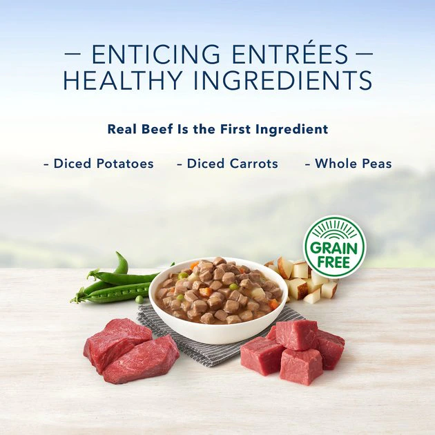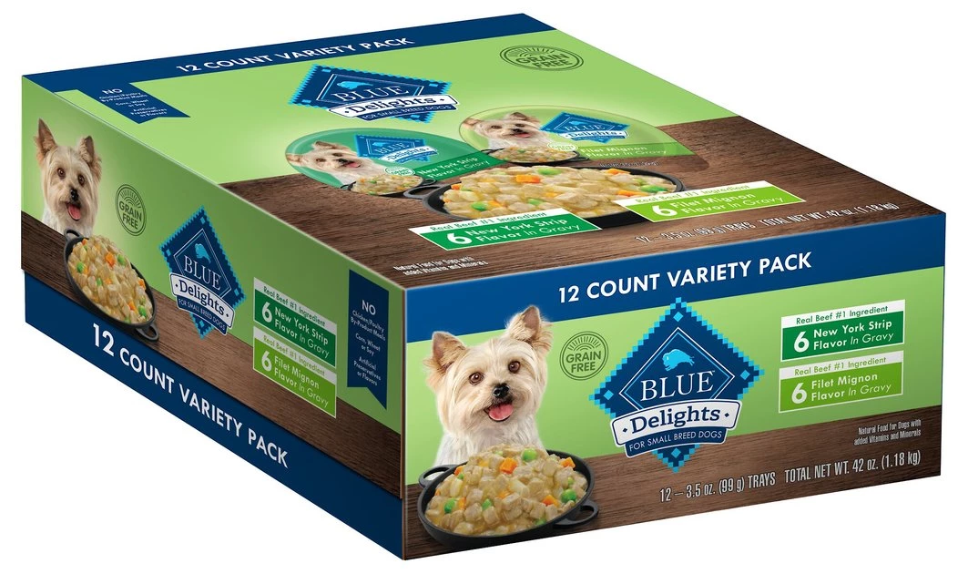 Feed your little furry friend a meal that’s both nutritious and delicious! Blue Buffalo Divine Delights Gravy Variety Pack Filet Mignon & NY Strip Flavor Dog Food Trays are crafted to meet the nutritional requirements of small breed dogs. Featuring high-quality, natural ingredients like real beef first, along with potatoes, carrots and peas, each wag-worthy tray is packed with the flavor he craves. And with vitamins and minerals added to support your hound’s overall health, how can you go wrong? You can’t!