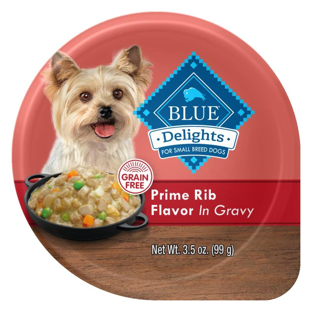 Feed your little furry friend a meal that’s both nutritious and delicious! Blue Buffalo Divine Delights Prime Rib Flavor Hearty Gravy Dog Food is crafted to meet the nutritional requirements of small breed dogs. Featuring high-quality, natural ingredients like real beef first, along with potatoes, carrots and peas in a delectable gravy, each wag-worthy tray is packed with the flavor he craves. And with zero grains and added vitamins and minerals to support your hound’s overall health, how can you go wrong? You can’t!
