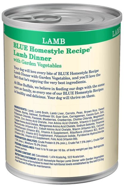 Deliver something different for your doggo’s next dinner with Blue Buffalo Homestyle Recipe Natural Adult Wet Dog Food. Paw-fect for your pupper pal, this irresistibly tasty wet food is made using only the finest natural ingredients. It starts with high-quality protein from tender pieces of lamb, packed with garden fruits and veggies, then enhanced with vitamins and minerals. Formulated to support lean muscle mass and the other nutritional needs of your adult amigo, this pate-style dog food is made with wholesome ingredients that do not contain any by-product meals, corn, wheat, soy, artificial flavors or preservatives.