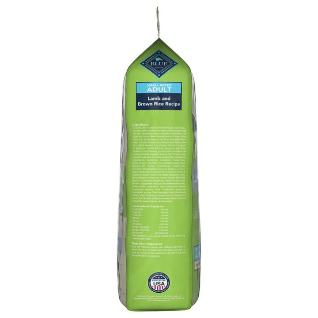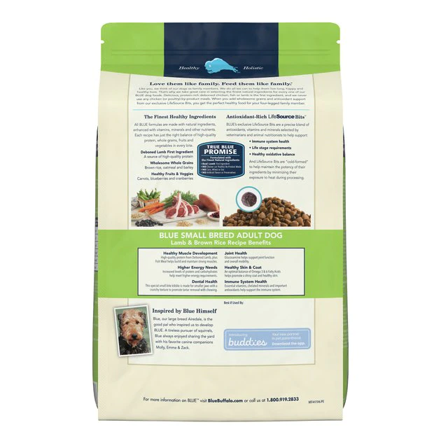 Blue Buffalo Life Protection Formula was created for the health and well-being of dogs. All formulas start with real meat, whole grains, garden veggies and fruit, plus added LifeSource Bits, a precise blend of nutrients that have been enhanced with a Super 7 package of antioxidant-rich ingredients. This Small Breed Adult Lamb & Brown Rice Recipe features delicious, protein-rich deboned lamb and is made with increased protein and carbohydrates to meet higher energy needs.