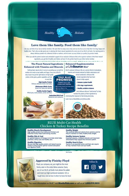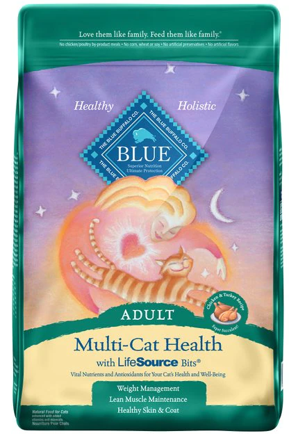 Have several kitties? Give them some kibble that’s nutritious and oh-so-delicious! Blue Buffalo’s Multi-Cat Health Chicken & Turkey Recipe Adult Dry Cat Food is made from some of the finest natural ingredients and enhanced with vitamins and minerals. This delectable recipe is designed for households with multiple feline friends and features real chicken and turkey to fuel your cats’ muscles, plus wholesome grains, veggies and fruit. It also includes BLUE’s exclusive LifeSource Bits—a combination of selected antioxidants, minerals and vitamins picked by veterinarians and animal nutritionists to support your cats’ overall health and wellness. Now your paw-tners really have something to purr about!