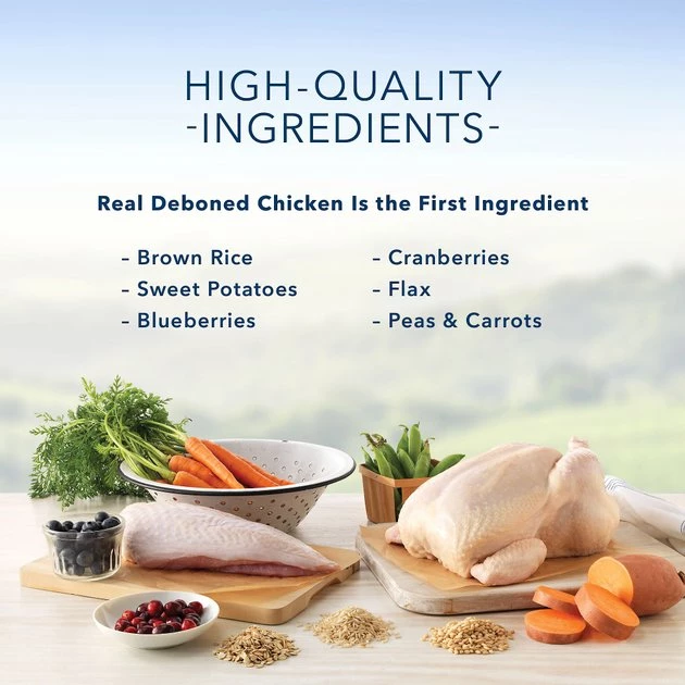Deboned Chicken, Deboned Turkey, Chicken Meal, Brown Rice, Barley, Oatmeal, Pea Protein, Peas, Menhaden Fish Meal, Dried Egg Product, Chicken Fat (Preserved With Mixed Tocopherols), Natural Flavor, Dried Tomato Pomace, Flaxseed (Source Of Omega 6 Fatty Acids), Potato Starch, Calcium Chloride, Fish Oil (Source Of Omega 3 Fatty Acids), Calcium Sulfate, DL-Methionine, Choline Chloride, Potassium Chloride, Potatoes, Dried Chicory Root, Taurine, L-Lysine, Dehydrated Alfalfa Meal, Pea Fiber, Alfalfa Nutrient Concentrate, Calcium Carbonate, Salt, L-Ascorbyl-2-Polyphosphate (Source Of Vitamin C), Preserved With Mixed Tocopherols, Vitamin E Supplement, Cranberries, Sweet Potatoes, Carrots, L-Carnitine, Vegetable Juice For Color, Ferrous Sulfate, Niacin (Vitamin B3), Iron Amino Acid Chelate, Zinc Amino Acid Chelate, Zinc Sulfate, Blueberries, Barley Grass, Parsley, Turmeric, Dried Kelp, Yucca Schidigera Extract, Copper Sulfate, Thiamine Mononitrate (Vitamin B1), Copper Amino Acid Chelate, Biotin (Vitamin B7), Vitamin A Supplement, Manganese Sulfate, Manganese Amino Acid Chelate, Pyridoxine Hydrochloride (Vitamin B6), Calcium Pantothenate (Vitamin B5), Riboflavin (Vitamin B2), Vitamin D3 Supplement, Vitamin B12 Supplement, Folic Acid (Vitamin B9), Dried Yeast, Dried Enterococcus Faecium Fermentation Product, Dried Lactobacillus Acidophilus Fermentation Product, Dried Aspergillus Niger Fermentation Extract, Dried Trichoderma Longibrachiatum Fermentation Extract, Dried Bacillus Subtilis Fermentation Extract, Calcium Iodate, Sodium Selenite, Oil Of Rosemary.