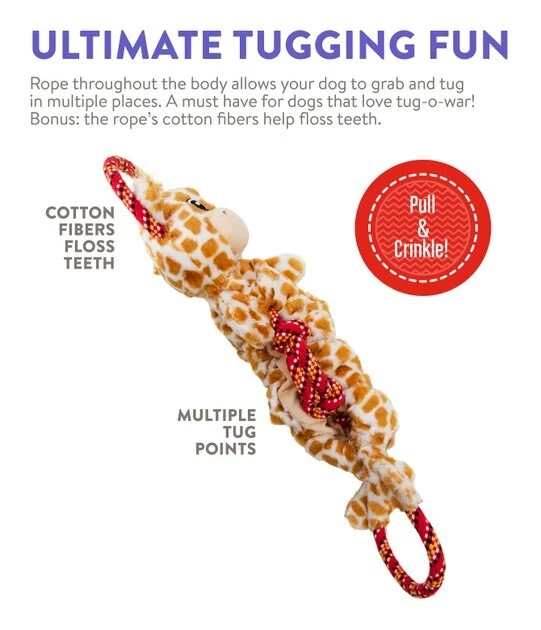 - Soft plush exterior combined with the rope makes this toy perfect for cuddles or tug-o-war.