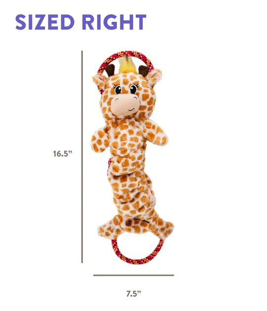 Engage in an epic battle of tug-o-war with your best fur-iend by tossing him a Charming PetCrunch N Scrunch Giraffe Plush Dog Toy. It’s crafted with plush fabric, a silly squeaker, crinkly parts, and a durable rope, so the options range from a spontaneous game of tug-o-war to an intense chewing session to a quick cuddle. This toy is even made to last long and strong due to its K9 Tuff Guard technology, which includes durable, non-rip canvas, double-stitched seams, and nylon infused tear points–plus, cotton fibers mean your pup can get an impromptu teeth cleaning as he chomps away.
