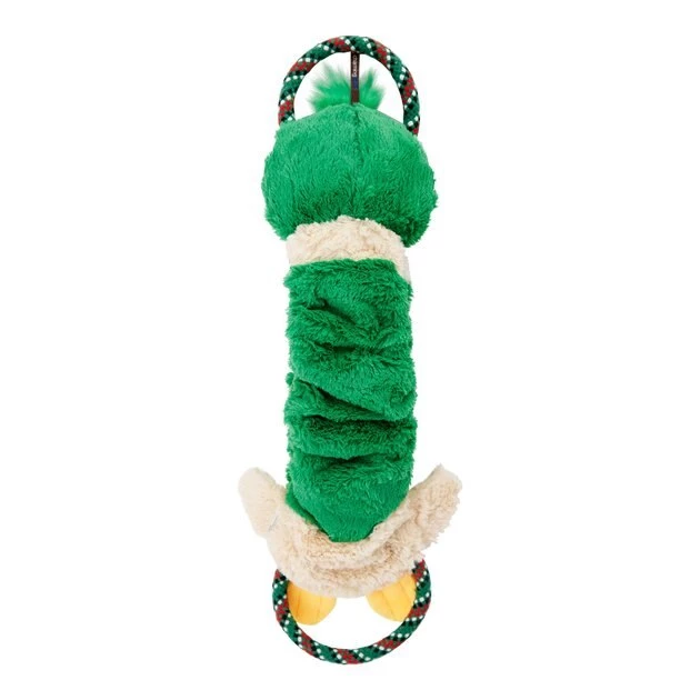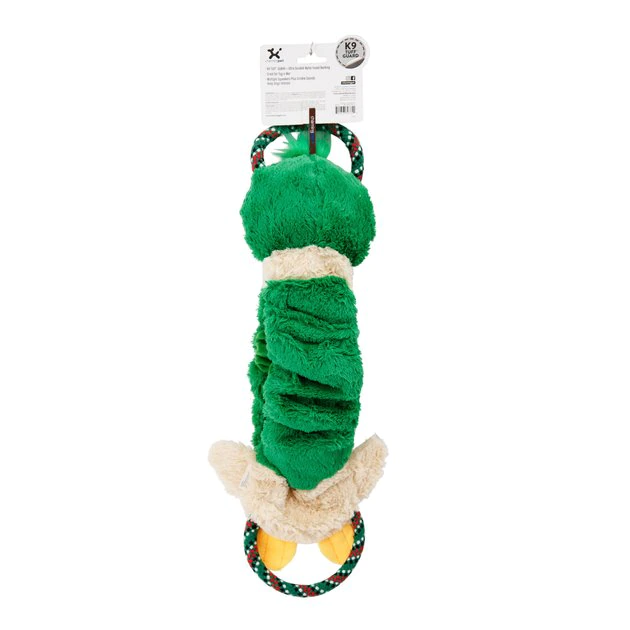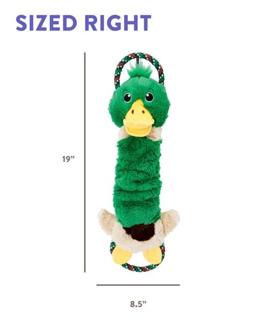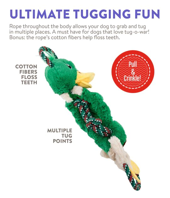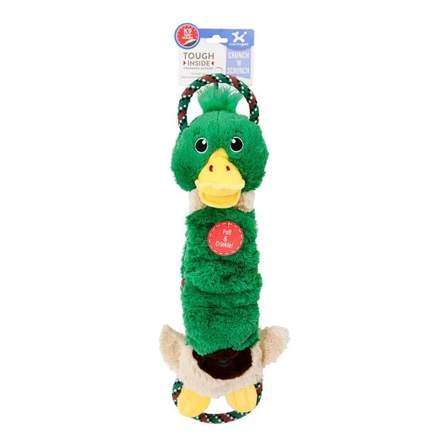 Engage in an epic battle of tug-o-war with your best fur-iend by tossing him a Charming PetCrunch N Scrunch Mallard Plush Dog Toy. It’s crafted with plush fabric, a silly squeaker, crinkly parts, and a durable rope, so the options range from a spontaneous game of tug-o-war to an intense chewing session to a quick cuddle. This toy is even made to last long and strong due to its K9 Tuff Guard technology, which includes durable, non-rip canvas, double-stitched seams, and nylon infused tear points–plus, cotton fibers mean your pup can get an impromptu teeth cleaning as he chomps away.