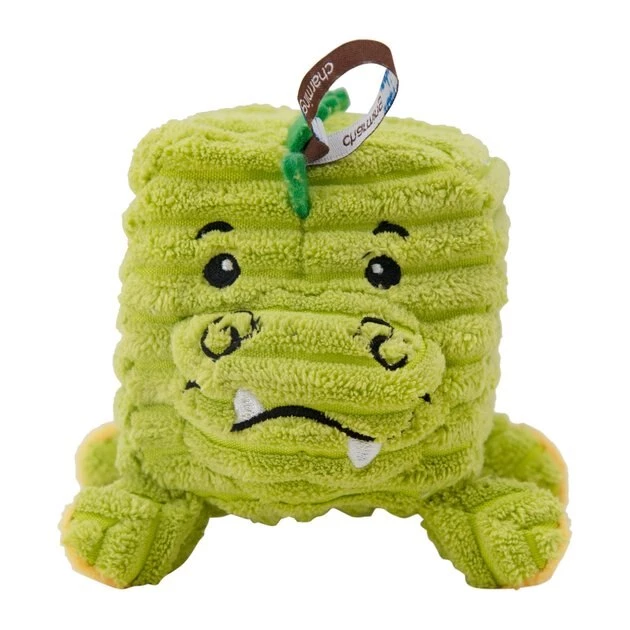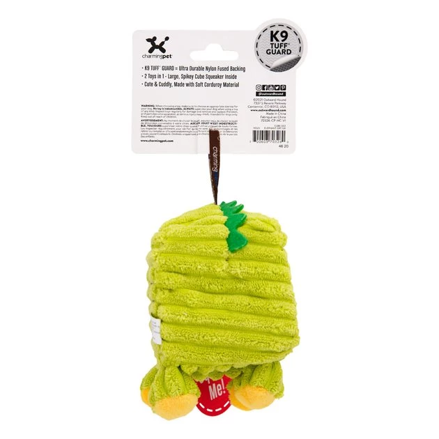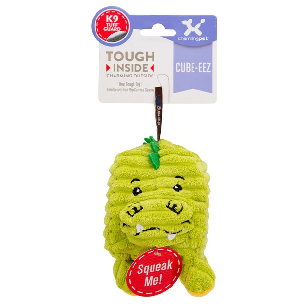 Take your sidekick on an adventure into the swamp with the Charming Pet Cube-Eez Gator Squeaky Dog Toy. This fun fetch toy is paw-fect for dogs of all ages and breeds. It is crafted to be strong enough to stand up to tough biters with a strong denier canvas lining, double-stitched seams and a nylon-fused backing. This two-in-one dog toy features a spiky squeaker inside that becomes its own exciting bounce toy if exposed from the plush outer shell. Suitable for both indoor and outdoor use, your furry friend will have a blast with his new favorite toy—no matter where you go!