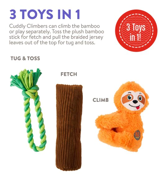 Playtime is becoming even more fun with the addition of a new triple threat on the scene—in this case, it’s the Charming PetCuddly Climbers Sloth Plush Dog Toy! This 3-in-1 toy has a handy bamboo stick the cuddly buddy clings to and slides around on, while you can detach it for a rowdy game of fetch or pull out the braided jersey leaves for some quality tug-o-war. Plus, Charming Pet’s K9 Tuff Guard technology ensures that a few chews won’t tear it apart due to durable, non-rip canvas, double-stitched seams, and nylon-infused tear points. The added squeaker and crinkle will drive your pup paw-sitively mad for playtime.