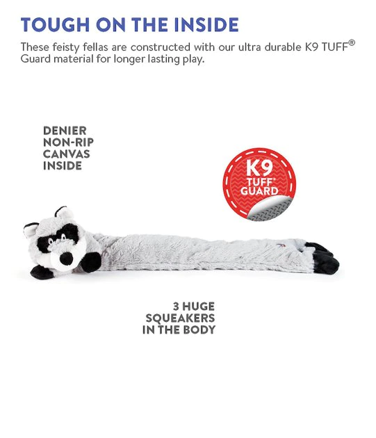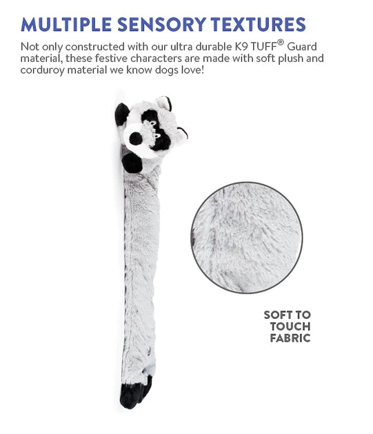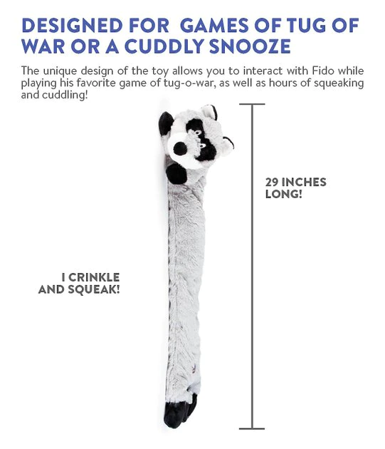 Your pooch won’t be able to mask his excitement for the Charming Pets Longidudes Raccoon Squeaky Plush Dog Toy. This lengthy dog toy is perfect for games of tug-of-war or a good old fashioned frolic. It features three large squeakers and crinkle paper inside, adding extra excitement and interest to your pal’s playtime. Made to be ultra-durable, it’s designed with K9 TUFF Guard material, double-stitched seams and non-rip canvas, letting your pooch have longer to enjoy his new playmate. It’s also super soft—great for cuddling when playtime is done!
