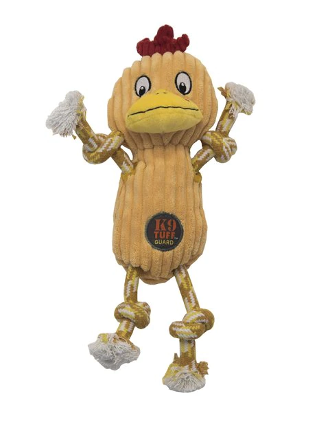 Take your pup on a trip to the farm with this Ranch Roperz Chicken Toy! Made of nubby, tough corduroy and braided climbing rope, this chick is soft and floppy enough for hours of play, and the sneaky squeaker inside its comb-topped head is ready to surprise. One size fits all in this farmyard!