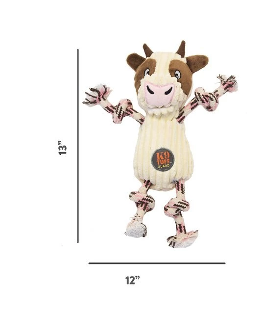 Your canine companion will have a ton of barnyard fun playing with Charming Pet’s Ranch Roperz Cow Dog Toy! This fun plush pal has a corduroy exterior and is made with Charming Pet’s K9 Tuff Guard—a layer of durability to help it withstand plenty of play. It also has a squeaker inside the head for added excitement and knotted arms and legs that are paw-fect for a game of tug-o-war! Ranch Roperz come in three other fun and cuddly characters—Pig, Chicken and Horse (all sold separately).