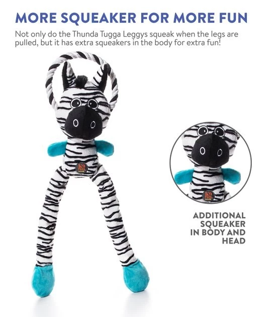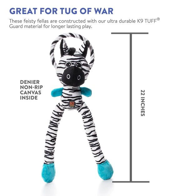 - This plush and soft toy zebra is perfect for pups who adore a good game of tug.