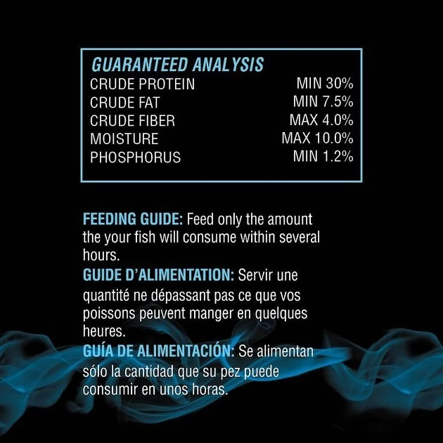 Fish Meal, Wheat, Rice Flour, Wheat Bran, Dehulled Soybean Meal, Wheat Germ Meal, Dried Spirulina, Dicalcium Phosphate, Dried Alfalfa Meal, Carrots, Celery, Beets, Parsley, Water Cress, Spinach, Brewers Dried Yeast, Soy Lecithin, Pea By-Product Meal, Dried Kelp, Shrimp Meal, Krill Meal, L-Lysine, Manganese Proteinate, Zinc Proteinate, Copper Proteinate, Calcium Iodate, Iron Proteinate, Cobalt Proteinate, Calcium Carbonate, Sodium Selenite, Vitamin A Acetate, Vitamin D3 Supplement, Dl-Alpha Tocopheryl Acetate, Vitamin B12 Supplement, Riboflavin, Niacin, Calcium Pantothenate, Menadione Sodium Bisulfite Complex, Folic Acid, Thiamine Mononitrate, Pyridoxine Hydrochloride, Biotin, L-Ascorbyl-2-Polyphosphate (Source Of Vitamin C), Dl-Methionine, Artificial Color *Naturally Contains Astaxanthin.